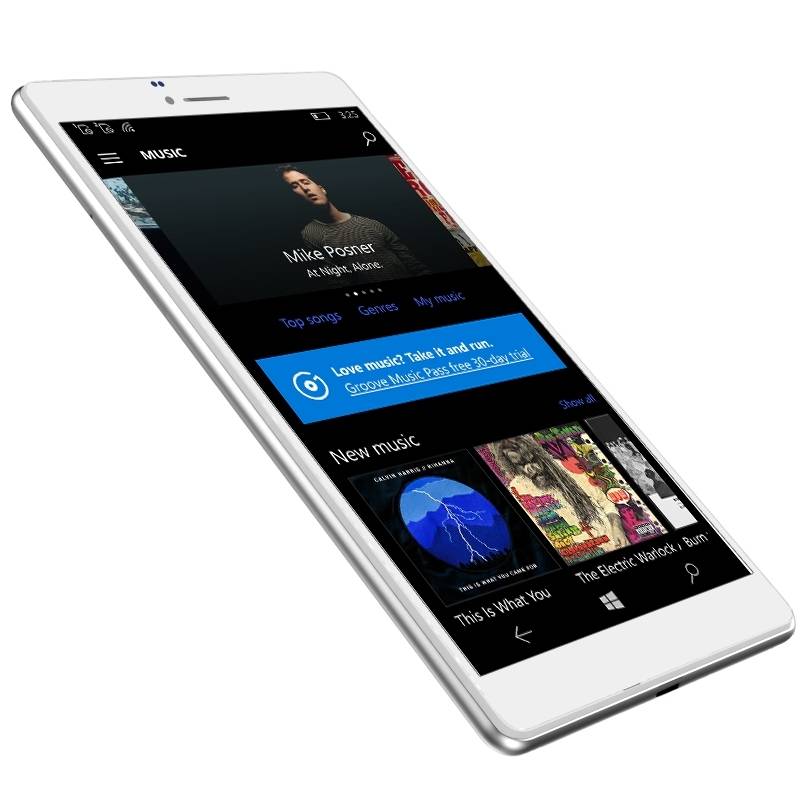 Поскольку перед нами фаблет, то он просто обязан иметь две камеры. Так и есть, передняя представлена 2 МП сенсором, задняя 5 МП сенсором. Сама система Windows 10 Mobile - это фактически та же Windows Mobile, которую все мы знаем по ее плиточкам. И хотя балом правит Андроид, Windows 10 Mobile подкупает наличием предустановленных фирменных приложений от Microsoft, как например, Word, Exel, Skype и т.д. Поскольку планшет поддерживает SIM-карты, по нему можно смело звонить или сидеть в интернете благодаря поддержке сетей 4-го поколения.