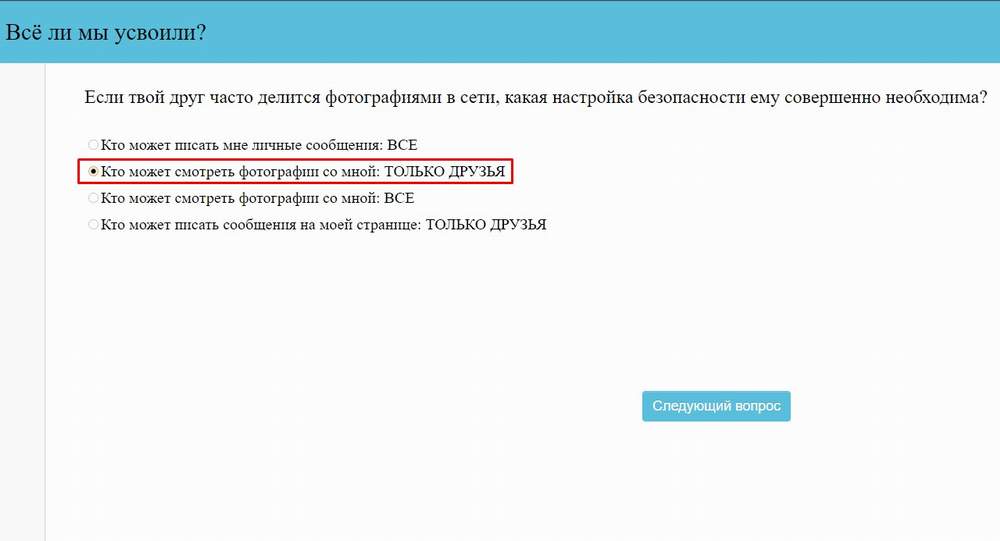 Повторение - мать учения. В самом конце вам предложат пройти тест, в котором необходимо выбрать правильные ответы для подкрепления полученных знаний. Если что-то не знаете, забыли или не поняли, то воспользуйтесь нашими ответами (смотрите картинки).
